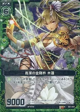 Japanese title: ゼクス/R/ゼクス/緑/EXパック『英雄達の宴』 E01-019[R]:高潔の金剛杵 木蓮(ホログラムレア)