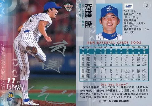 Japanese title: BBM/レギュラーカード/BBM2002ベースボールカード2nd 61 [レギュラーカード(銀サインパラレル)] : 斎藤隆 /銀サインパラレル