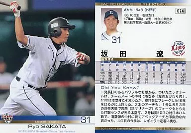 Japanese title: BBM/レギュラー/BBM 2012 ベースボールカード 1stバージョン 074[レギュラー]:坂田遼