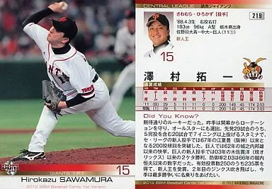 BBM / Regular / BBM 2012 Baseball Card 1 st Version 219 Regular : Takuichi Sawamura