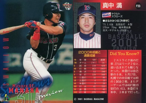BBM/2001 BBM Professional Baseball Preview P39 [Regular Card] : MANNAKA "Yakult Swallows"