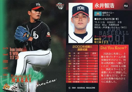 BBM/2001 BBM Professional Baseball Preview P64 [Regular Card] : Tomohiro Nagai "Fukuoka Daiei"