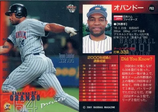 Japanese title: BBM/2001年BBMプロ野球 プレビュー版 P83[レギュラーカード]:オバンドー「日本ハムファイターズ」