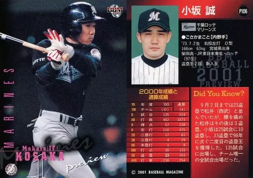 BBM/2001 BBM Professional Baseball Preview P. 106 [Regular Card] : Makoto Kosaka "Chiba Lotte Marines"