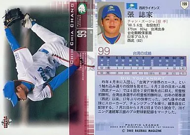 Japanese title: BBM/レギュラーカード/BBM2003ベースボールカード1st 199:張誌家「埼玉西武ライオンズ」