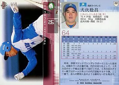 BBM / Regular Card / BBM2003 Baseball Card 1 st 202 : Toshimasa Inubushi "Saitama Seibu Lions"