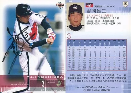 Japanese title: BBM/レギュラーカード/BBM2003ベースボールカード1st 230:吉岡雄二「大阪近鉄バファローズ」/サインパラレル