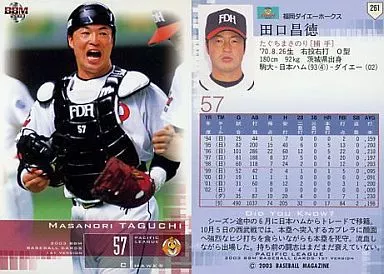 Japanese title: BBM/レギュラーカード/BBM2003ベースボールカード1st 261:田口昌徳「福岡ダイエーホークス」