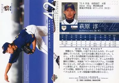 Japanese title: BBM/レギュラーカード/BBM2003ベースボールカード2nd 784:萩原淳「オリックスバファローズ」