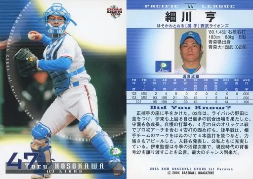 BBM / Regular Card / BBM2004 Baseball Card 1 st 44 : Toru Hosokawa "Saitama Seibu Lions"