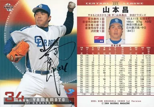 Japanese title: BBM/レギュラーカード/BBM2004ベースボールカード1st 225:山本昌「中日ドラゴンズ」/サインパラレル