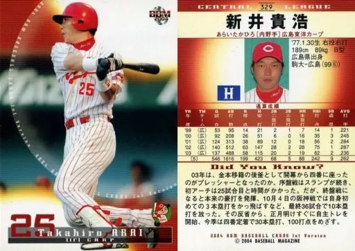 BBM / Regular Card / BBM2004 Baseball Card 1 st 329 : Takahiro Arai "Hiroshima Toyo Carp"