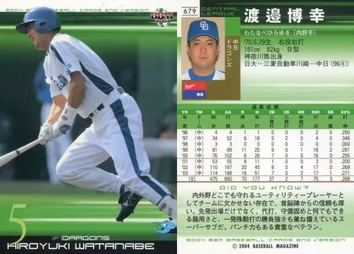 BBM / Regular Card / BBM2004 Baseball Card 2 nd 679 : Hiroyuki Watanabe "Chunichi Dragons"