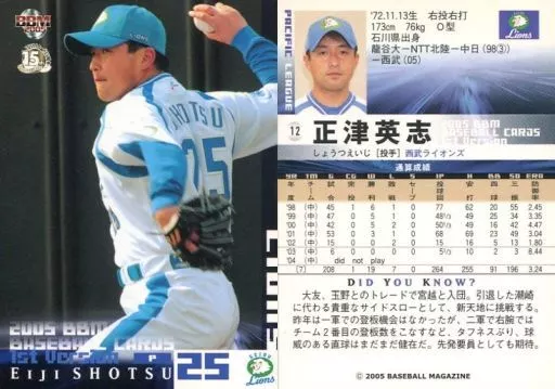 Japanese title: BBM/レギュラーカード/BBM2005ベースボールカード1st 12 : 正津英志「埼玉西武ライオンズ」