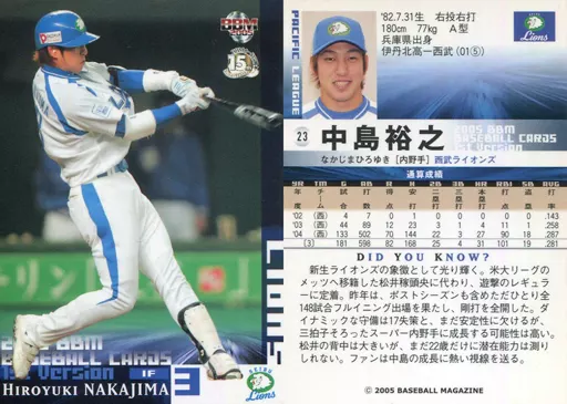 Japanese title: BBM/レギュラーカード/BBM2005ベースボールカード1st 23 : 中島裕之「埼玉西武ライオンズ」