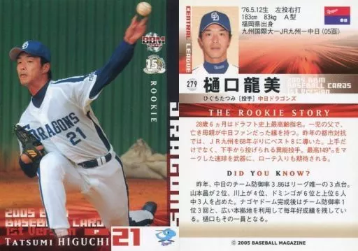 BBM / Regular Card / BBM2005 Baseball Card 1 st 279 : Tatsumi Higuchi "Chunichi Dragons"