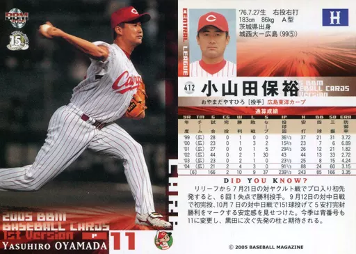 BBM / Regular Card / BBM2005 Baseball Card 1 st 412 : Yasuhiro Oyamada "Hiroshima Toyo Carp"