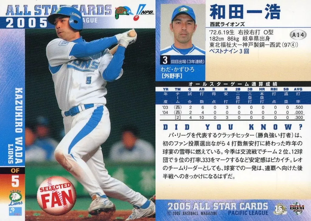 BBM / All-Star Card / BBM2005 Baseball Card A14 : Kazuhiro Wada "Saitama Seibu Lions"