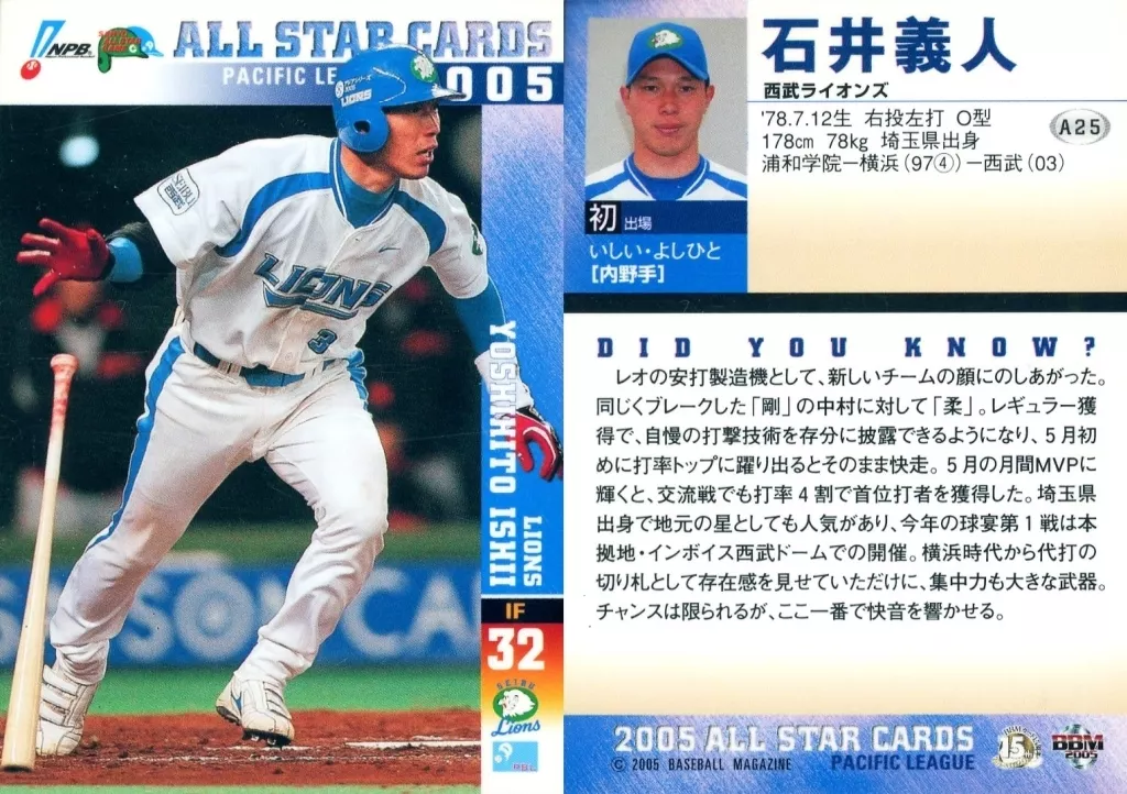 Japanese title: BBM/オールスターカード/BBM2005ベースボールカード A25:石井義人「埼玉西武ライオンズ」