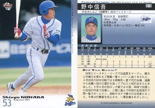 BBM / Regular Card / BBM2006 Baseball Card 1 st 313 : Shingo NONAKA "Yokohama BayStars"