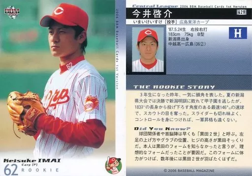 BBM / Regular Card / BBM2006 Baseball Card 1 st 429 : Keisuke Imai "Hiroshima Toyo Carp"