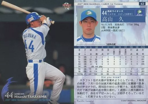 BBM / Regular Card / BBM2007 Baseball Card 1 st 62 : Hisashi Takayama "Saitama Seibu Lions"