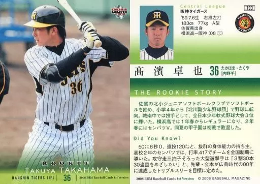 Japanese title: BBM/レギュラーカード/阪神タイガース/BBM2008 ベースボールカード 1stバージョン 103 [レギュラーカード] : 高濱卓也