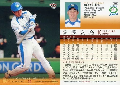 BBM / Regular Card / Saitama Seibu Lions / BBM2008 Baseball Card 1 st Version 388 [Regular Card] : Tomoaki Sato