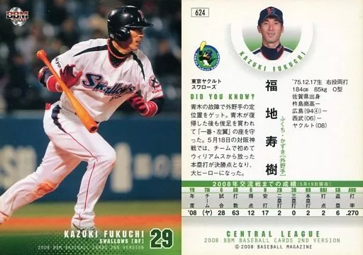 Japanese title: BBM/レギュラーカード/東京ヤクルトスワローズ/BBM2008 ベースボールカード2ndバージョン 624 [レギュラーカード] : 福地寿樹