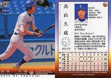 Japanese title: BBM/BBM 2011秋 東京六大学野球カードセット/東京大学 36 : 高山 久成