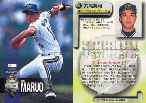 Japanese title: BBM/レギュラーカード/オリックス・ブルーウェーブ/BBM’98 ベースボールカード 183 [レギュラーカード] : 丸尾英司