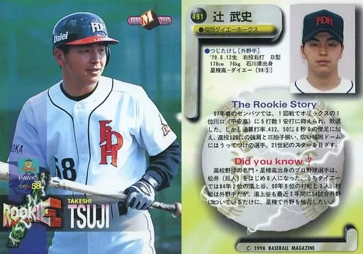 Japanese title: BBM/レギュラーカード/福岡ダイエーホークス/BBM’98 ベースボールカード 491 [レギュラーカード] : 辻武史