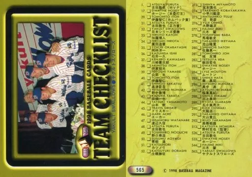 Japanese title: BBM/レギュラーカード/ヤクルトスワローズ/BBM’98 ベースボールカード 565 [レギュラーカード] : ヤクルトスワローズ