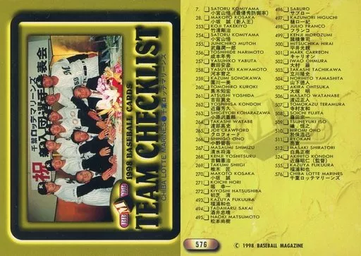 Japanese title: BBM/レギュラーカード/千葉ロッテマリーンズ/BBM’98 ベースボールカード 576 [レギュラーカード] : 千葉ロッテマリーンズ