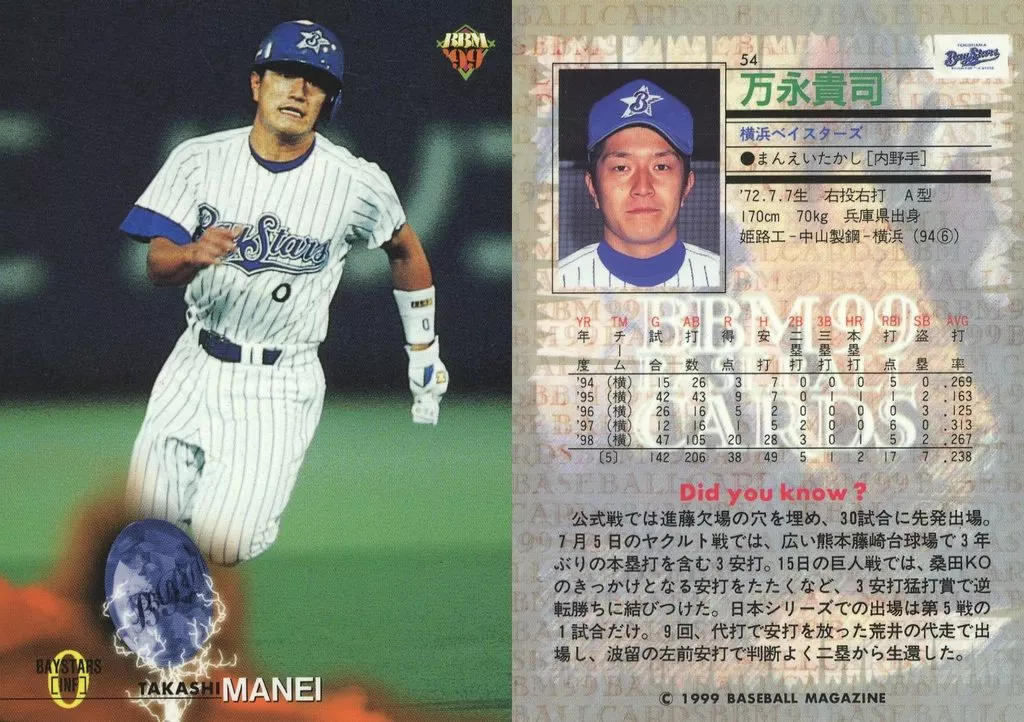 Japanese title: BBM/レギュラーカード/BBM99ベースボールカード 54[レギュラーカード]:万永貴司