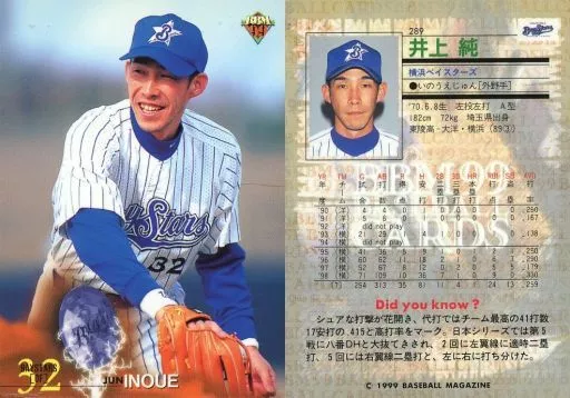 Japanese title: BBM/レギュラーカード/BBM99ベースボールカード 289[レギュラーカード]:井上純