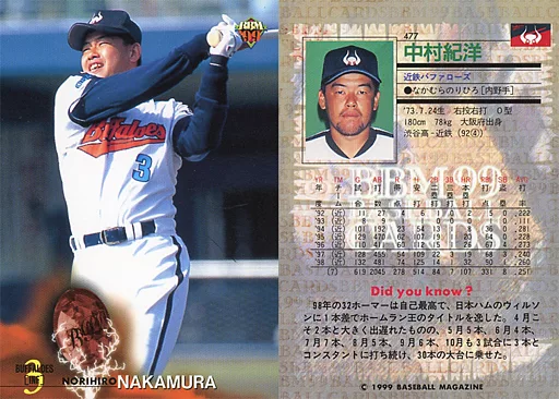 Japanese title: BBM/レギュラーカード/BBM99ベースボールカード 477[レギュラーカード]:中村紀洋