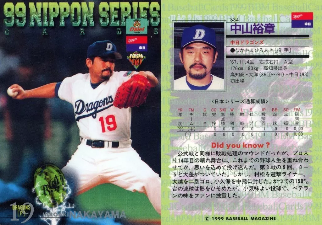 Japanese title: BBM/日本シリーズカード/BBM99ベースボールカード S34:中山裕章「中日ドラゴンズ」