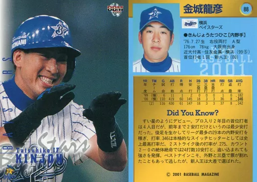 Japanese title: BBM/レギュラーカード/BBM2001ベースボールカード 88:金城龍彦「横浜ベイスターズ」