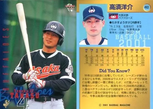 BBM / Regular Card / BBM2001 Baseball Card 493 : Yosuke Takasu' Osaka Kintetsu Buffaloes'