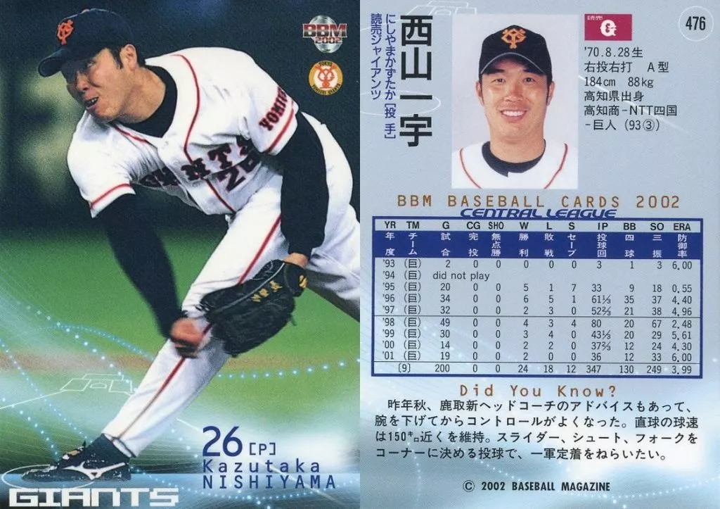 BBM / Regular Card / BBM2002 Baseball Card 2 nd 476 : Nishiyama Ichiu "Yomiuri Giants"