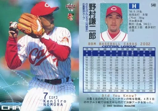 BBM / Regular Card / BBM2002 Baseball Card 2 nd 548 : Kenjiro Nomura "Hiroshima Toyo Carp"