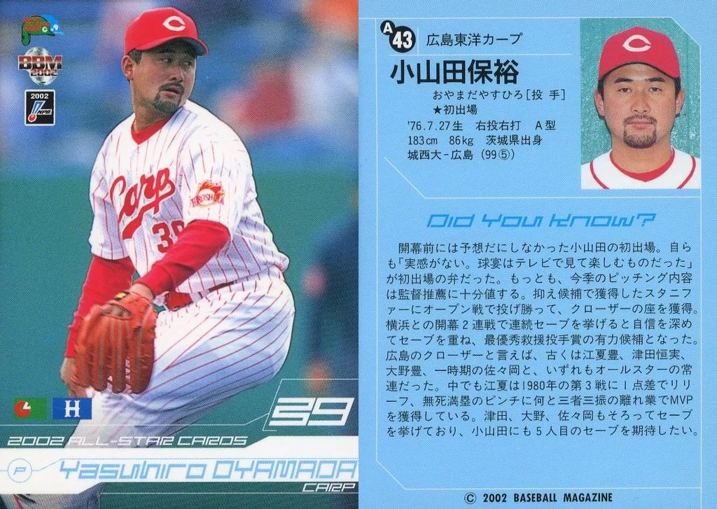 BBM / All-Star Card / BBM2002 Baseball Card A43 : Yasuhiro Oyamada "Hiroshima Toyo Carp"