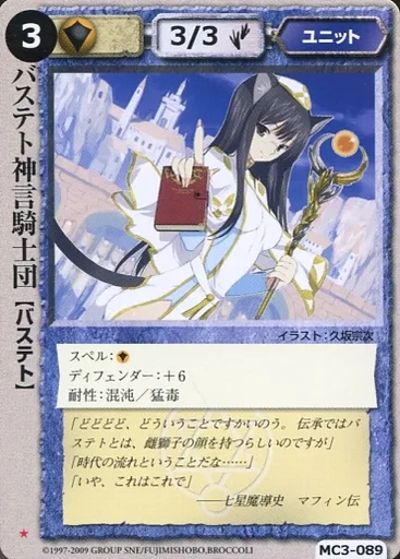 Japanese title: モンスターコレクション/稀/ユニット/英雄王の星誕 MC3-089[稀]:バステト神言騎士団