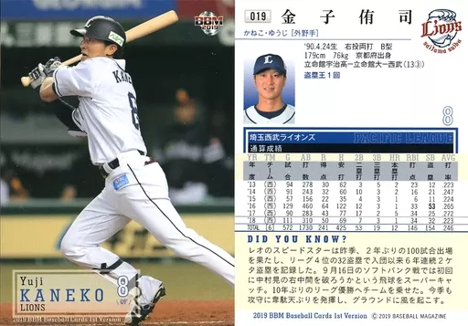 Japanese title: BBM/レギュラーカード/埼玉西武ライオンズ/BBM2019 ベースボールカード 1stバージョン 019 [レギュラーカード] : 金子侑司