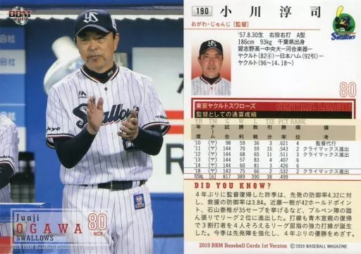 Japanese title: BBM/レギュラーカード/東京ヤクルトスワローズ/BBM2019 ベースボールカード 1stバージョン 190 [レギュラーカード] : 小川淳司