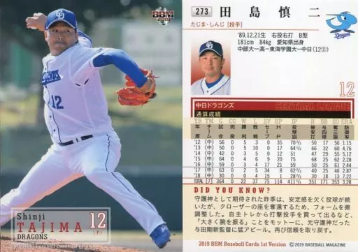 BBM / Regular Card / Chunichi Dragons / BBM2019 Baseball Card 1 st Version 273 [Regular Card] : Shinji Tajima