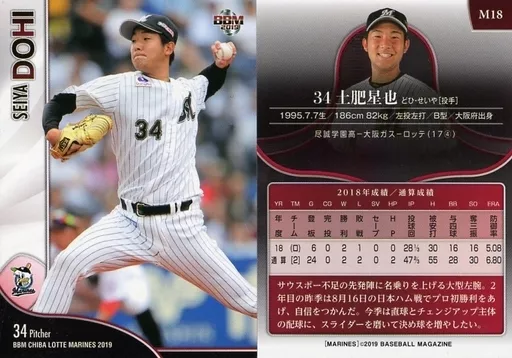 Japanese title: BBM/レギュラーカード/千葉ロッテマリーンズ/BBM2019 千葉ロッテマリーンズ M18 [レギュラーカード] : 土肥星也