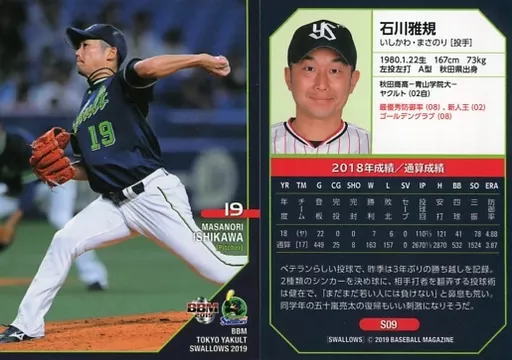 Japanese title: BBM/レギュラーカード/東京ヤクルトスワローズ/BBM2019 東京ヤクルトスワローズ S09 [レギュラーカード] : 石川雅規