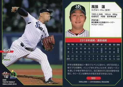 Japanese title: BBM/レギュラーカード/東京ヤクルトスワローズ/BBM2019 東京ヤクルトスワローズ S33 [レギュラーカード] : 風張蓮